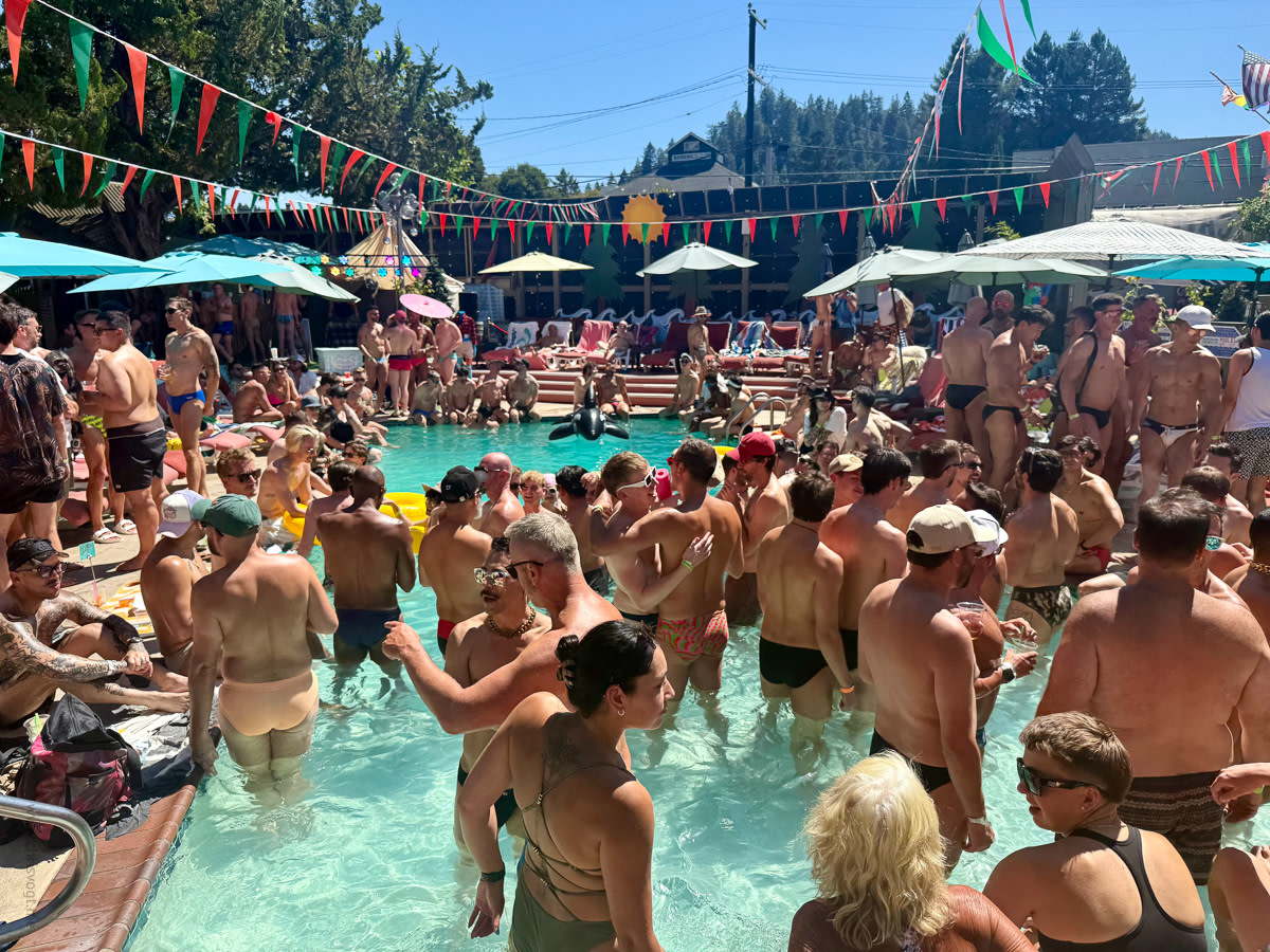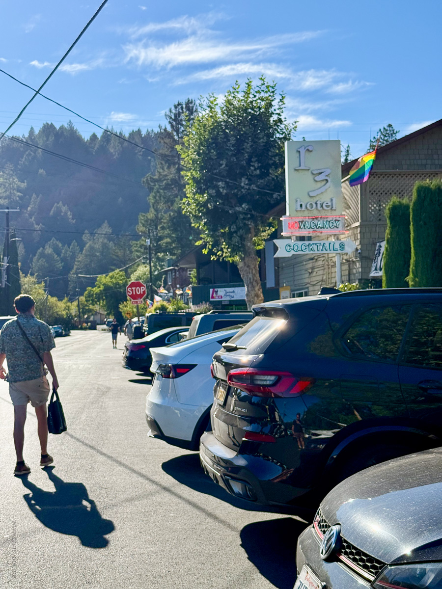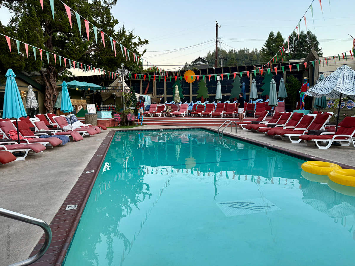 I drove north to Sonoma County for Labor Day weekend, spending time in Guerneville—a small town along the Russian River that draws LGBTQ+ travelers during summer months. Temperatures reached the mid-90s, which made the pool particularly inviting.