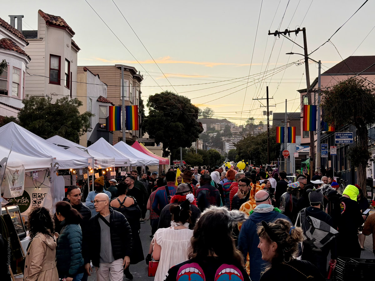The month wrapped up with Halloween, which landed on a Friday for the first time in over a decade. After work, I headed to the Castro for the Castro Night Market, which ran from 5–10 p.m. on Halloween day — a street festival with stages, live music, vendors selling merchandise from booths on 18th Street (closed to traffic for the event), and city-permitted outdoor bars allowing public drinking for the evening. The neighborhood — and probably the whole city — was buzzing with that unmistakable San Francisco energy, full of people showing off their costumes and having a good time.