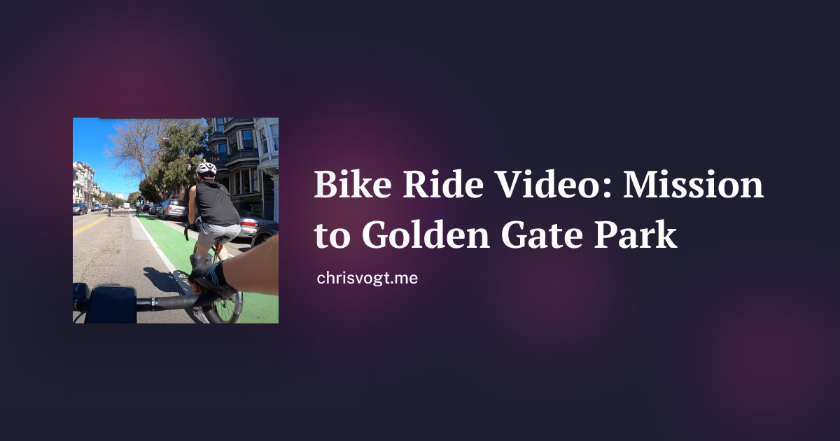 videos/bike-ridescycling san franciscosan francisco bike ridesan francisco bike pathgopro footagegopro cyclinggoprothe wigglemission districtgolden gate parksan franciscocaliforniabike ridebike pathbike routebikecyclingbicyclebicycle pathbicycle routebicycle ridebicycle ridebicycle pathbicycle routebicyclecyclingbikesan franciscocaliforniagolden gate parkmission districtthe wiggle A casual Sunday ride through San Francisco on March 27, 2021. Starting in the Mission District, I followed The Wiggle—a bike-friendly route that avoids the steepest hills—and made my way to Golden Gate Park. Recorded using a GoPro.